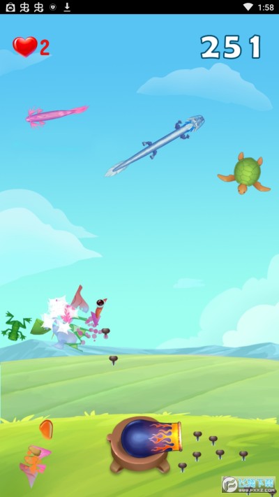 2、瞄準射擊,記錄爆射的果實。遊戲的圖案非常棒。