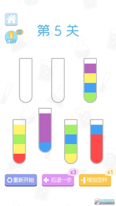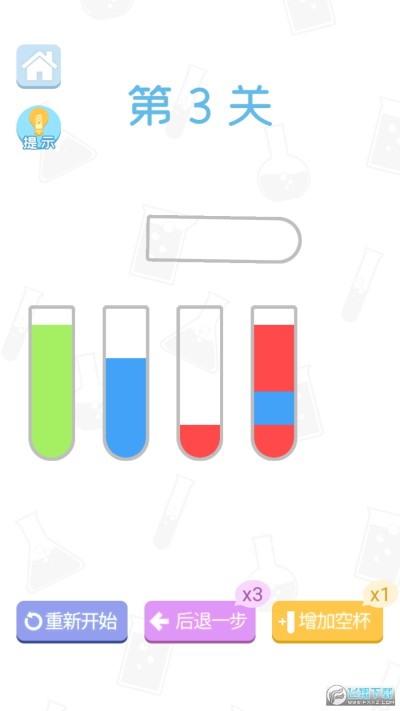 遊戲是整體還是很輕鬆的,玩家可以鍛煉自己的思維能力,還可以輕鬆自己的大腦,液體都是很好區分的所以玩家隻需要看顏色即可;
