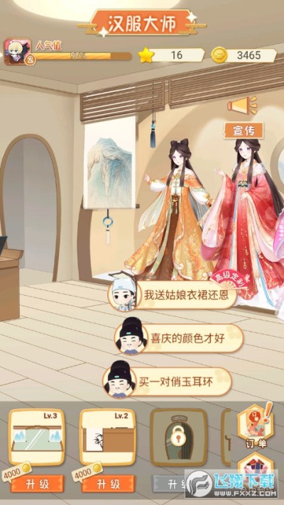 漢服大師是一款模擬經營類手遊。遊戲中玩家經營著一家漢服店,你需要定製客人想要的漢服,從衣服的剪裁一直到最後的裝飾細節,所有的製衣步驟都由你來完成,收集金幣解鎖更多元素,還能自己DIY漢服喔~