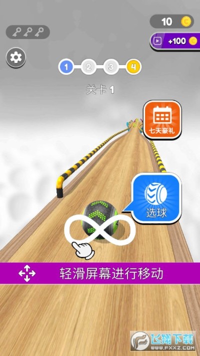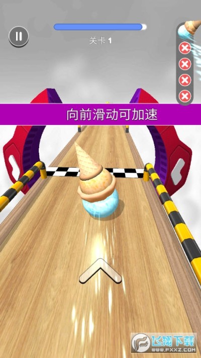 2、控製代表自己的小球不斷前進,利用途中的加速帶可以一路加速前進。