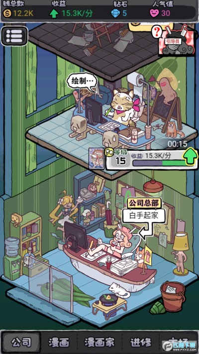 休閑放置:招募漫畫家來連載漫畫獲得無止境的收益。