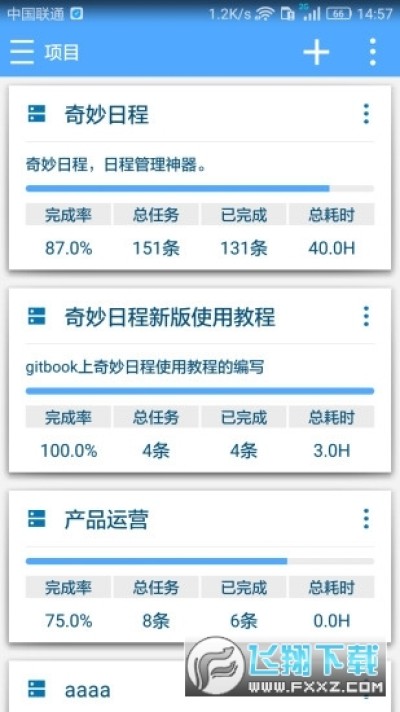 強悍的項目:項目視圖中通過進度條展示了每個項目的完成進度、完成率、總任務、已完成、總耗時等非常全麵的項目信息,是您掌控項目的絕佳能手。