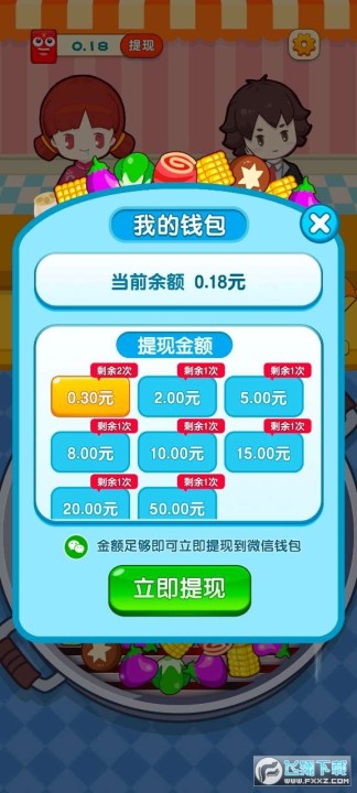 火鍋變變變紅包版是一款消除類賺錢小遊戲。玩法非常的簡單,點擊三個以上相同的食材即可成功消除,每一輪需要根據客戶選擇的食材進行消除,消除的越多紅包獎勵也就越多,感興趣的小夥伴們快來下載遊戲試試吧!