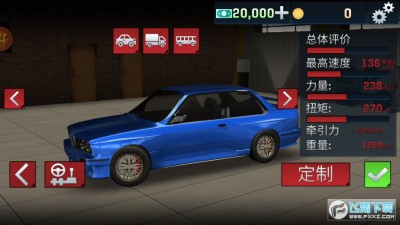 2、你可以在這些模式關卡中體驗不一樣的速度與激情,使用各種零件改裝汽車。