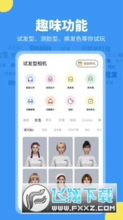 1.看發型圖片試發型,發型圖片包括男生發型、女生發型、兒童發型、、各種潮流染發、新娘發型造型等,任選喜歡的發型。