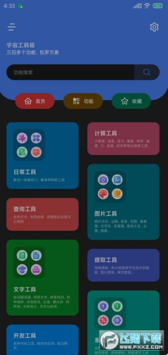 宇宙工具箱,一款顏值在線的手機工具軟件,界麵UI設計非常好看,軟件整合我們日常會碰到的各類功能,簡直萬能的感覺!宇宙工具箱主要包含日常類、圖片、文字、提取、計算、開發等幾大塊功能。