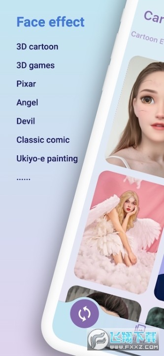通過人臉識別,生成3D卡通、天使、惡魔、美漫等7種特效。
