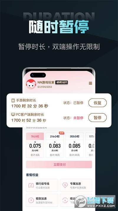 告別傳統包月會員製,唯一可暫停時長的加速器,按下暫停鍵,海量時長用不盡!