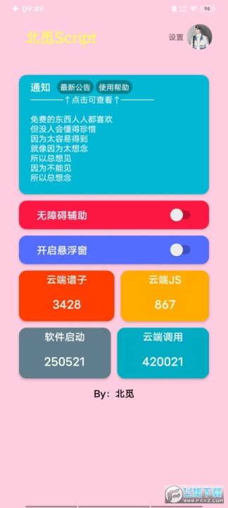 北覓Script光遇自動彈琴是一款光遇自動彈琴輔助腳本工具,用戶可以使用軟件在遊戲中開啟自動彈琴玩法,軟件雲端內含三千種曲譜供你選擇,操作簡單自動彈琴腳本體驗,對軟件感興趣的話不妨點擊下載試試!
