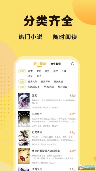 1、各種的小說分類很齊全,有玄幻,遊戲,曆史,仙俠,懸疑等等。