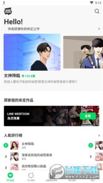 1、在本站下載並安裝webtoon官方正版,進入軟件首先選擇喜歡的作品類型。