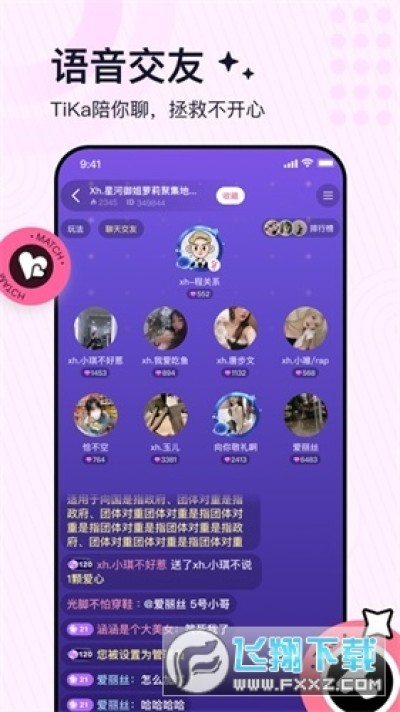 TiKa官方app是一款由廈門仟淼信息谘詢服務有限公司研發的語音社交軟件。在這裏,為你提供了各種類型的語音聊天室,你可以與來自全國各地的小夥伴們一起享受聊天的樂趣,還可以開黑玩遊戲。除此之外,你可以遇到命中注定的那個TA,發展一段新的戀情。在這裏,不看外貌,隻聽聲音,好聽的聲音可以吸引更多的人互動。有需要的用戶不要錯過這款軟件,快來下載體驗一番吧!