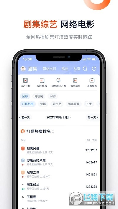 2.影視劇播放量表現:電視劇、網劇、綜藝、動漫播放量及收視率每日更新,快速了解用戶跨屏內容消費趨勢;