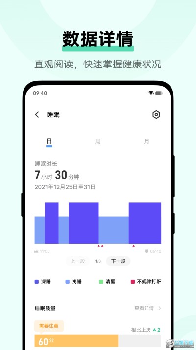 2.有貼心的睡眠質量監測功能,結合科學的睡眠和健康服務,讓你跑得更快!