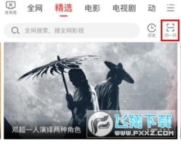 4、使用掃碼連接,打開電視端多屏互動,找到二維碼,進入手機端多屏互動“影視-精選”頁麵,點擊“掃一掃”進入掃碼頁麵,掃描電視端多屏互動二維碼