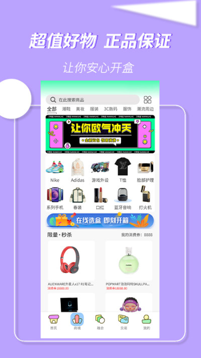 【海量商品全覆蓋】包含豐富的潮流熱門商品:手機數碼、網紅食品、品牌電器、潮玩手辦、以及各種美妝、香水等,讓你足不出戶享受盲盒樂趣!開出快樂,驚喜不斷!