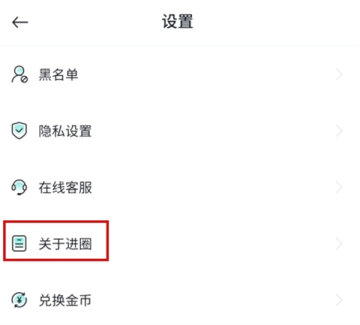 2、在設置頁麵中點擊關於進圈按鈕;