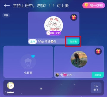 1、在組cp頁麵中點擊進入房間;