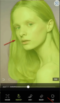 在這裏我們點擊快速摳圖操作選項,並選中圖中的背景部分,將需要摳圖的人像完美的摳出來,最後點擊√選項,保存確認即可