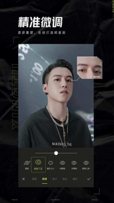 精準美型:提供細節調整功能,讓五官整體更加自然,個性化微調完美保留個人特征。