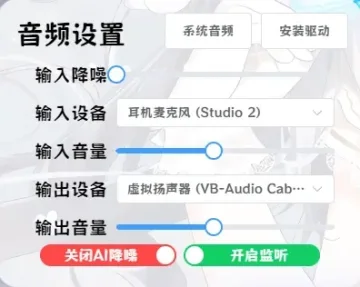 3:如果你需要監聽到自己的變聲,開啟監聽,監聽通道就是選擇硬件耳機揚聲器