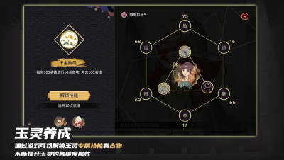 當前版本遊戲,有4個玉靈可供玩家選擇 ,每個玉靈都有自成一派的技能和各自的屬性,輔助你的戰鬥 ,根據玉靈技能特性,組建你的卡牌會讓戰鬥輕鬆一點