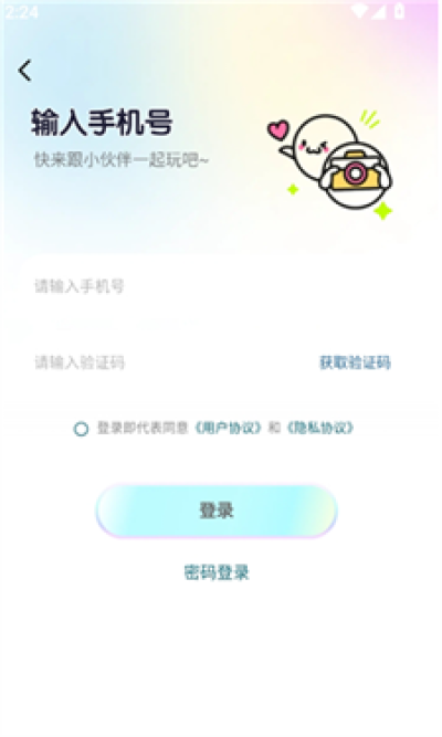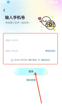 3、直接輸入手機號驗證登錄,新手機號自動注冊為新賬號