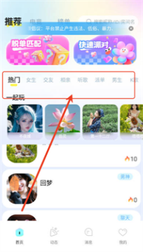 1、進入Nomi星球app首頁,提供不同的社交圈子,大家可以篩選分類