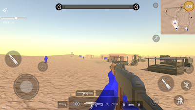 4、滑動左下角輪盤移動人物,點擊右下角射擊、下蹲、跳躍等。