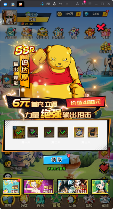 後綴說明:充值永久0.1折扣,經典IP《龍珠》原型角色,遊戲內每日送648元代金券