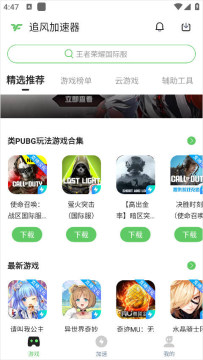 1、追風加速器app不僅支持市麵上絕大部分遊戲的加速,更是緊跟潮流,涵蓋眾多國外熱門遊戲以及最新上架的遊戲,讓你無論身處何地,都能暢快遊玩。