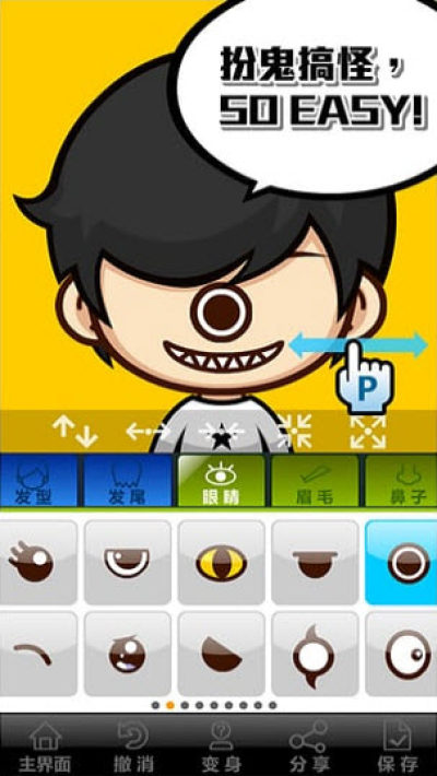 2. 搞怪也是一種藝術——眼睛鼻子你想放哪裏就放那裏,隻要你有創意,都可以隨意上下左右移動!