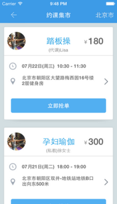基於移動互聯網的O2O平台,通過APP方便快速發布找一對一健身教練的需求,在線健身教練接收到通知後通過接單的方式完成與終端消費者的對接,課程完成給與健身教練相應的評價。當然,健身教練也可以通過發布需求尋找替課教練,企業尋找團課教練也是可以的。