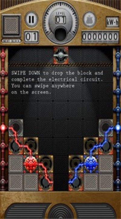 當正負兩極彼此聯通的時候,電流流過的方塊就會被消除掉,其它方塊則會依次下落填補空缺。遊戲的操作很簡單,用屏幕下方的虛擬搖杆左右移動屏幕上方出現的方塊,並在合適的位置放下就可以了。需要注意的是,有些方塊的方向是固定的,而另一些則會隨著左右移動而旋轉。碼放之前可要仔細看好導線方向哦。