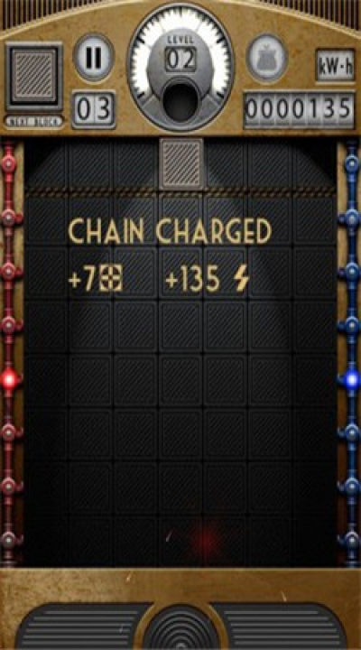 遊戲場景左右兩側各有一根電極柱,左側是紅色的正極,右側則是藍色的負極。遊戲玩起來有點像是接水管,畫麵上方會隨機出現帶有不同形狀導線的方塊。玩家需要合理碼放這些方塊,讓導線彼此聯通,將正負兩極的電流接在一起。