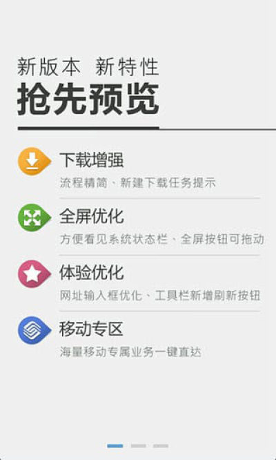 uc瀏覽器衝浪版是uc瀏覽器和中國移動合作推出的一個瀏覽器,其除了具備UC瀏覽器所有常規的功能外,還特別融合了很多中國移動網絡服務,如飛信、查話費和移動mm等等,對於平時使用中國移動業務較多的朋友非常適合使用該版本!