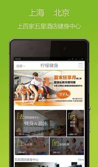 檸檬健身,健身垂直領域專業的媒體和O2O平台,中國目前唯一一家專注五星級酒店高品質服務的健身App。
