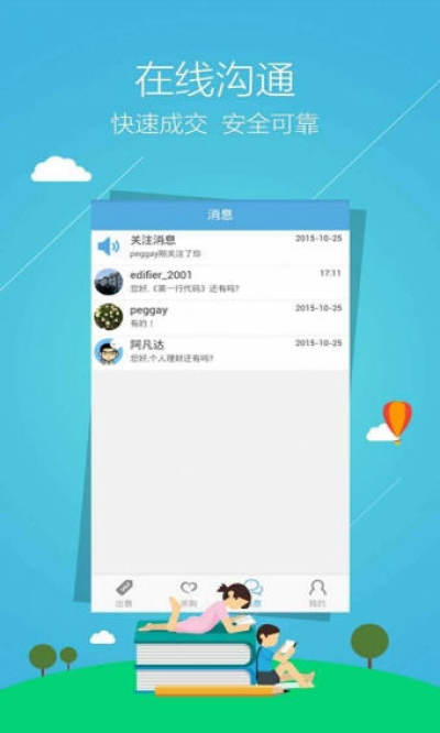 通過即時聊天功能,讓用戶可以快速聯係出售或求購的同學,實現線上聯係、線下交易,以書會友;