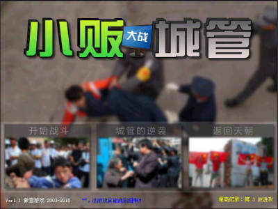前有釘子戶大戰拆遷隊,現在又來一個小販大戰城管。這部最新的小販大戰城管,也是一部塔防遊戲。畫麵看起來雖然不怎麼樣,但是遊戲性十足。超過11種的道具供你選擇。遊戲難度頗高。看你能打到第幾關哦。後麵的城管,攻擊那是相當的高啊。感覺完全頂不住的樣子。