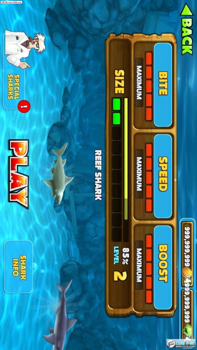 完成50個任務,尋找寶物取得金幣與寶石,用來升級你的鯊魚或者購買特殊救生道具。