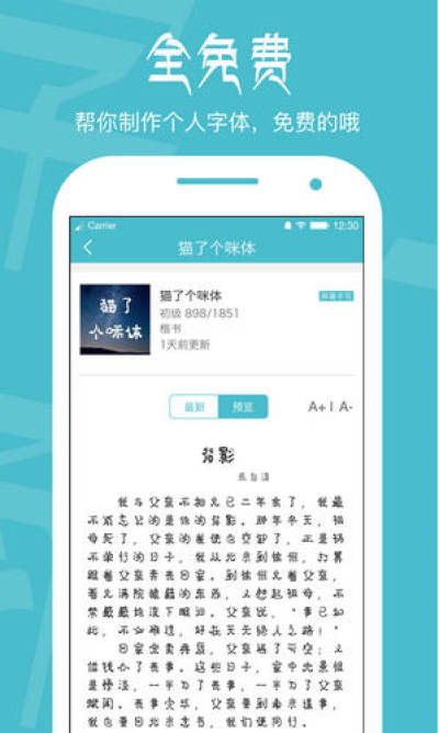 【有驚喜】隻要你的字體有特色,有性格,高逼格,我們會提供最專業的字體製作團隊為你製作、包裝、營銷字體,還會上線各大應用商店,寫字賺錢兩不誤。