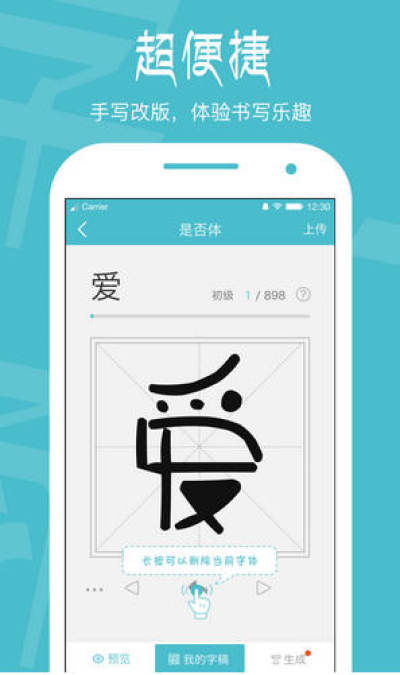 【門檻低】不需要具備任何專業寫字的知識,隻要書寫898個漢字和字符,就可以獲得個人字體。