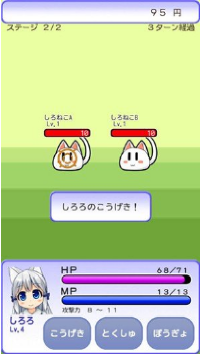 進行工作存錢,給小貓買好吃的與玩具,提升親密度,有時也要派小貓去和奇怪的軍團戰鬥!