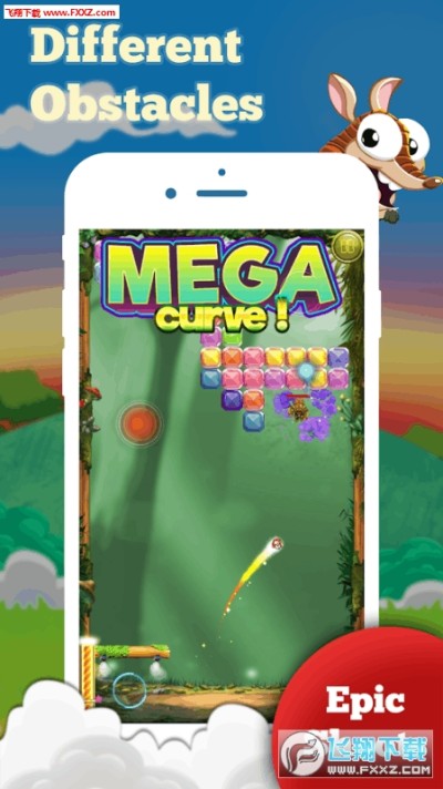 玩家在遊戲中需要找好角度發射犰狳撞擊方塊,使方塊消失,並要接住犰狳不讓其掉落在地。看似簡單但是很考驗玩家操作。