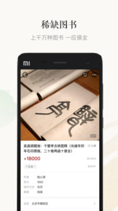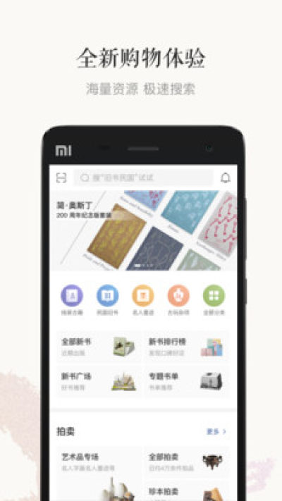 拍賣區:每日新增10000種拍品,從明清古籍、民國期刊、名人信劄到近期出版的新書,從字畫、連環畫、郵票、錢幣到古玩雜項,都能夠以合適的價格購得。