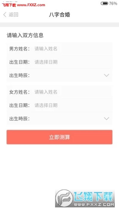 4. 星座緣分配對:根據男女雙方12星座特征,血型,日常喜好、顏色方麵,分析出兩人緣分指數。並給出最佳情侶星座配對。