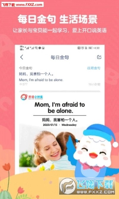 ·每日金句中包含高頻的生活場景,讓家長與孩子能一起學習到家庭環境中實用的句式,自然將啟蒙英語融入到生活中。讓寶貝愛上開口說英語。