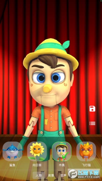 用戶在App中選擇角色,選擇背景,簡單的測試之後即可開始錄製視頻並保存到App內,選擇滿意的作品導出成為視頻到手機相冊中。