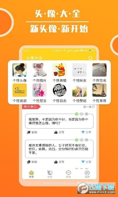 頭一個讓你挑花眼的照軟件,不僅僅是可以做頭像,想要什麼照都可以在這裏搜索查找。當你心不好的時候可以換下頭像改變一下當時的心;當你用膩了現在的頭像也可以換下頭像改變一下當時的狀態;當你看到喜歡的照也可以換個頭像改變一下自己