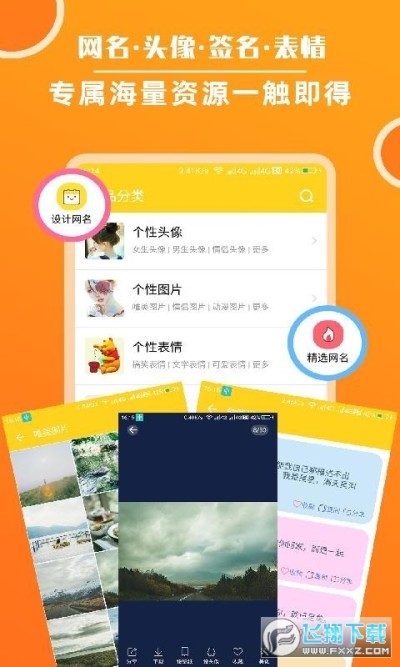 3、除了提供頭像資源外,還可以找到網絡名稱、簽名、圖片集等;